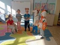 Цель: Формировать интерес к театру, к театрализованной деятельности. Репетировали сценку "Маша Капризуля" в ролях: Маша, Мурзик (кот), Барбос (собака), Петушок и Барашек.